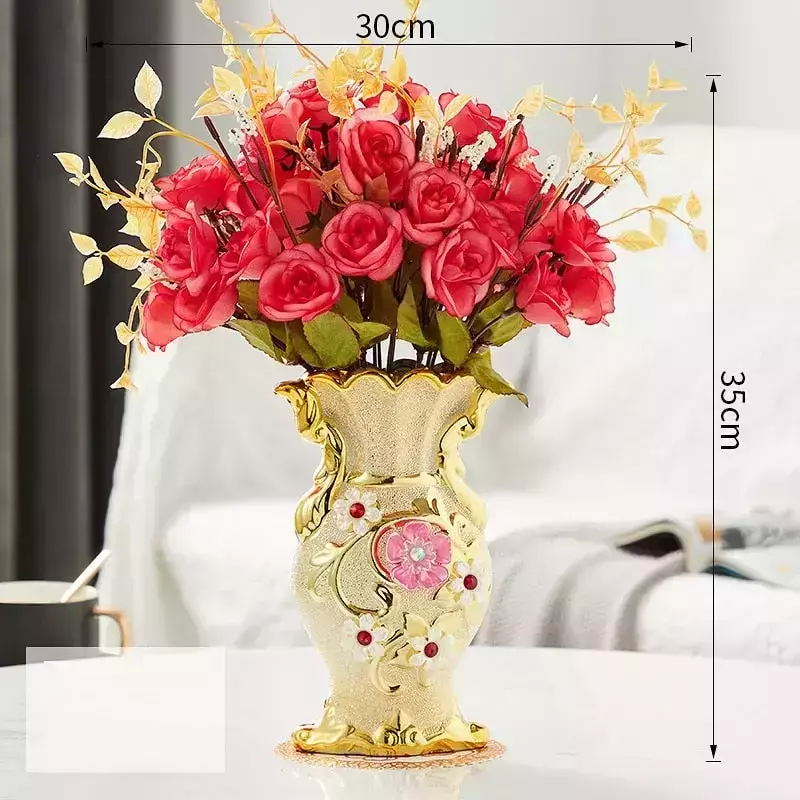 Surpreenda com este lindo e exclusivo arranjo de flores! O vaso é feito de porcelana vintage com acabamento em cor ouro fosco, para dar o toque final perfeito à sua decoração.